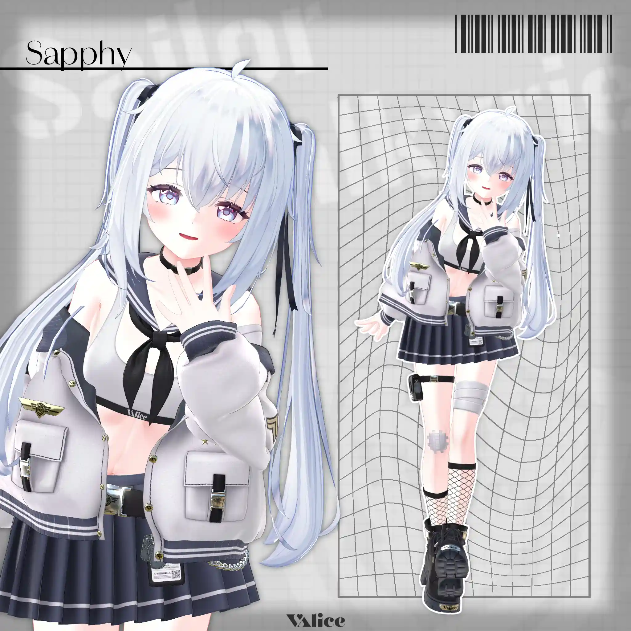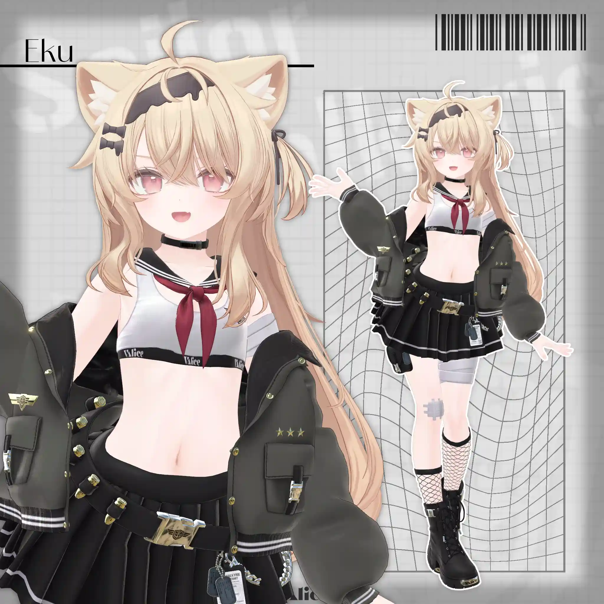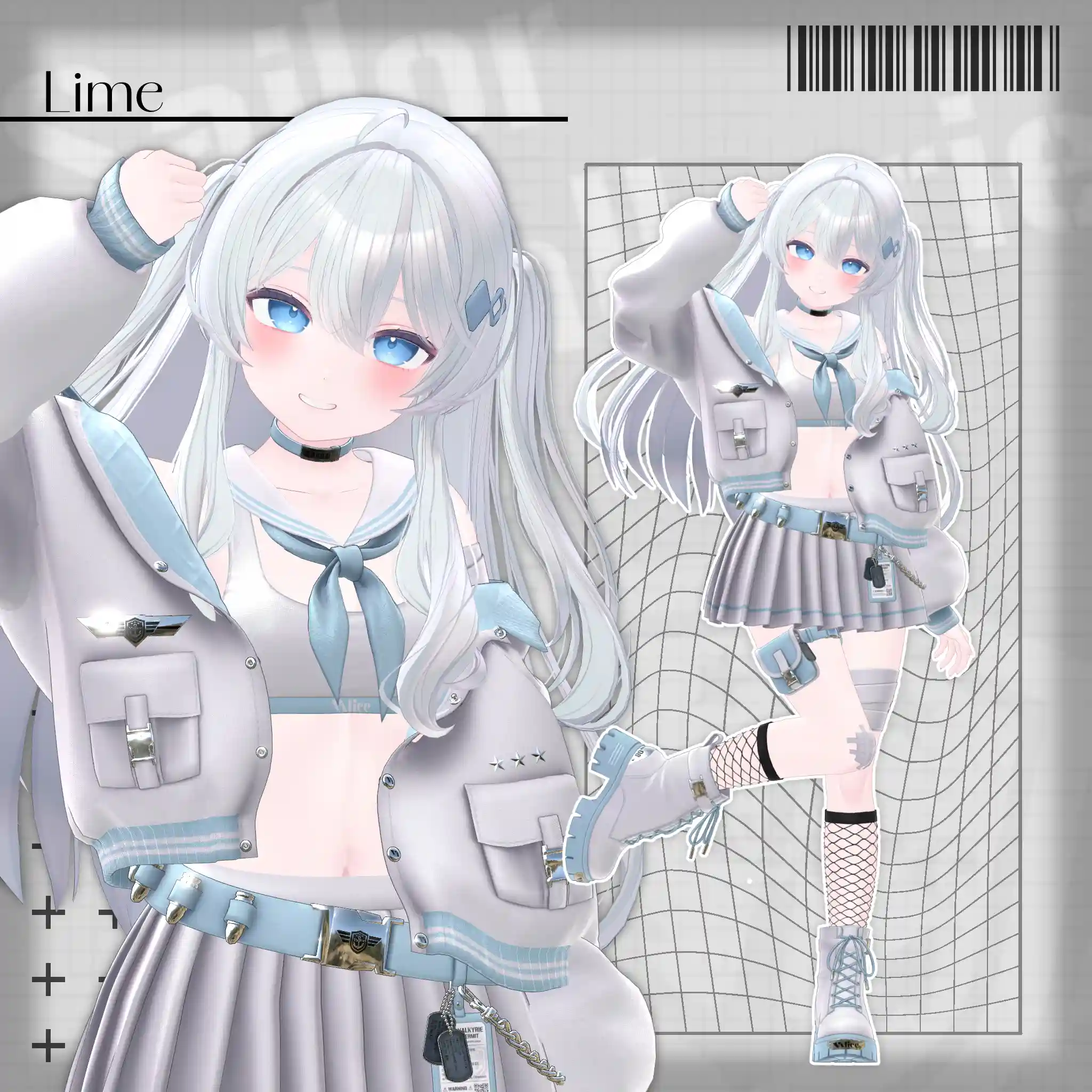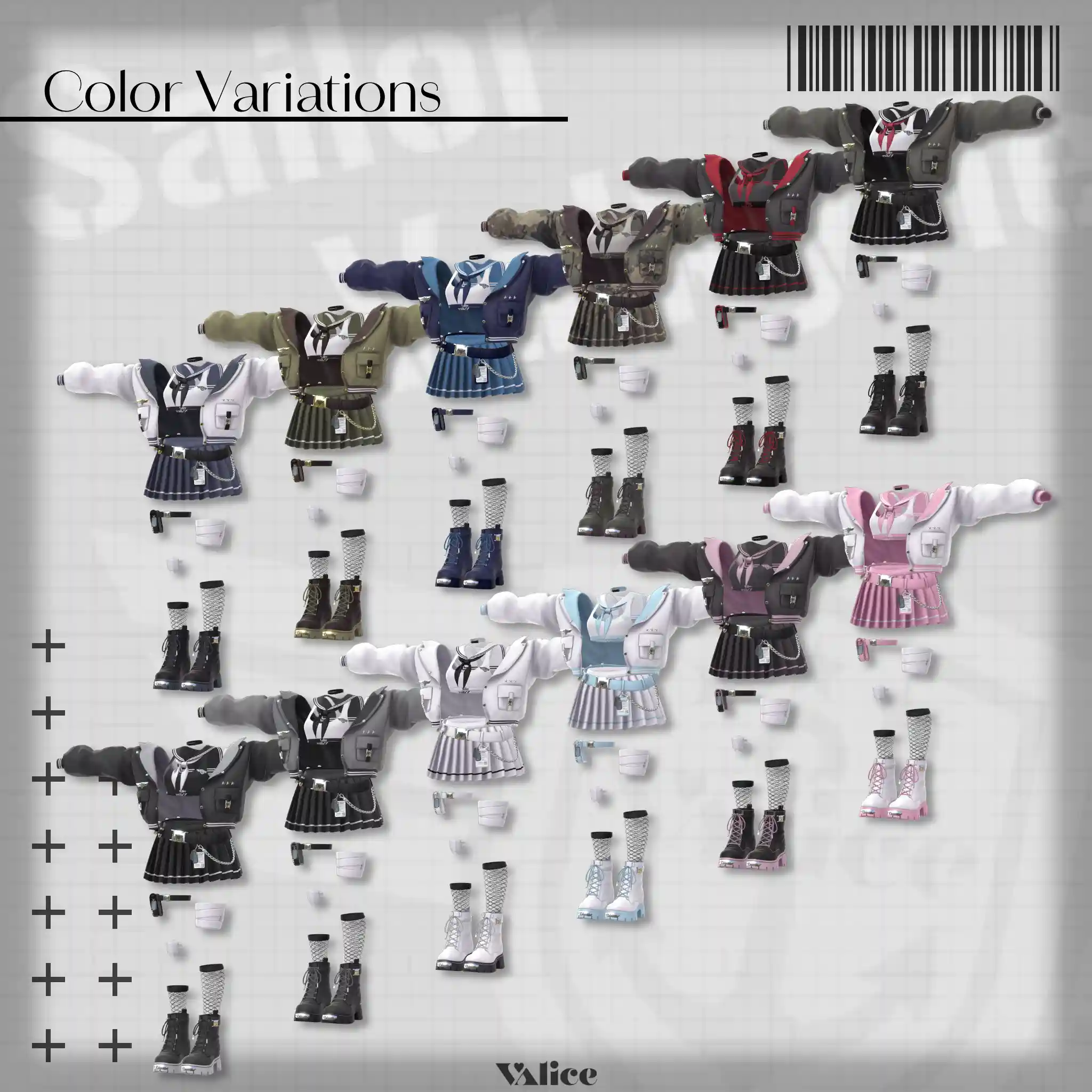 2号店Bonyardにて販売中の「包帯ショート」と合わせてデザインした、VRChat想定のミリタリー×セーラー服モチーフの衣装です。🔗包帯ショートはこちらhttps://stgtokyoavatargatecom.ecbeing.biz/shop/g/gARR-0005/