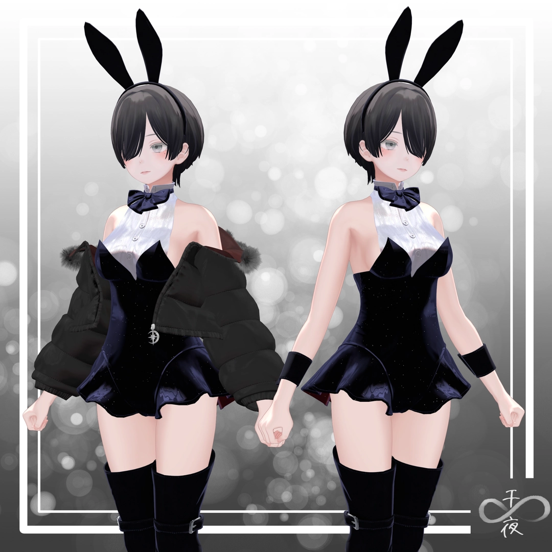 - Unity Version:※ 2022.3.22f1- VRCSDK3※- Shader:liltoon (ver 1.8.4)- Polygon Count:△50,748 in total- Materials: 3※ A 1K 2nd texture is used for the inner lining of the down jacket.※ The fur function of liltoon is used for the down jacket and bunny suit tail.- Shape Keys for the Chest:※ Listed below under compatible avatars.※ When setting to "Breast Small," please disable Physics Bone.※ Please note that excessive movement may cause clipping.※ Please understand that texture stretching may occur on movable parts.※ If you notice any obvious clipping or incorrect behavior, it is likely a mistake.If found, we would appreciate it if you could contact us. (Messages via BOOTH are easier for us to notice.)