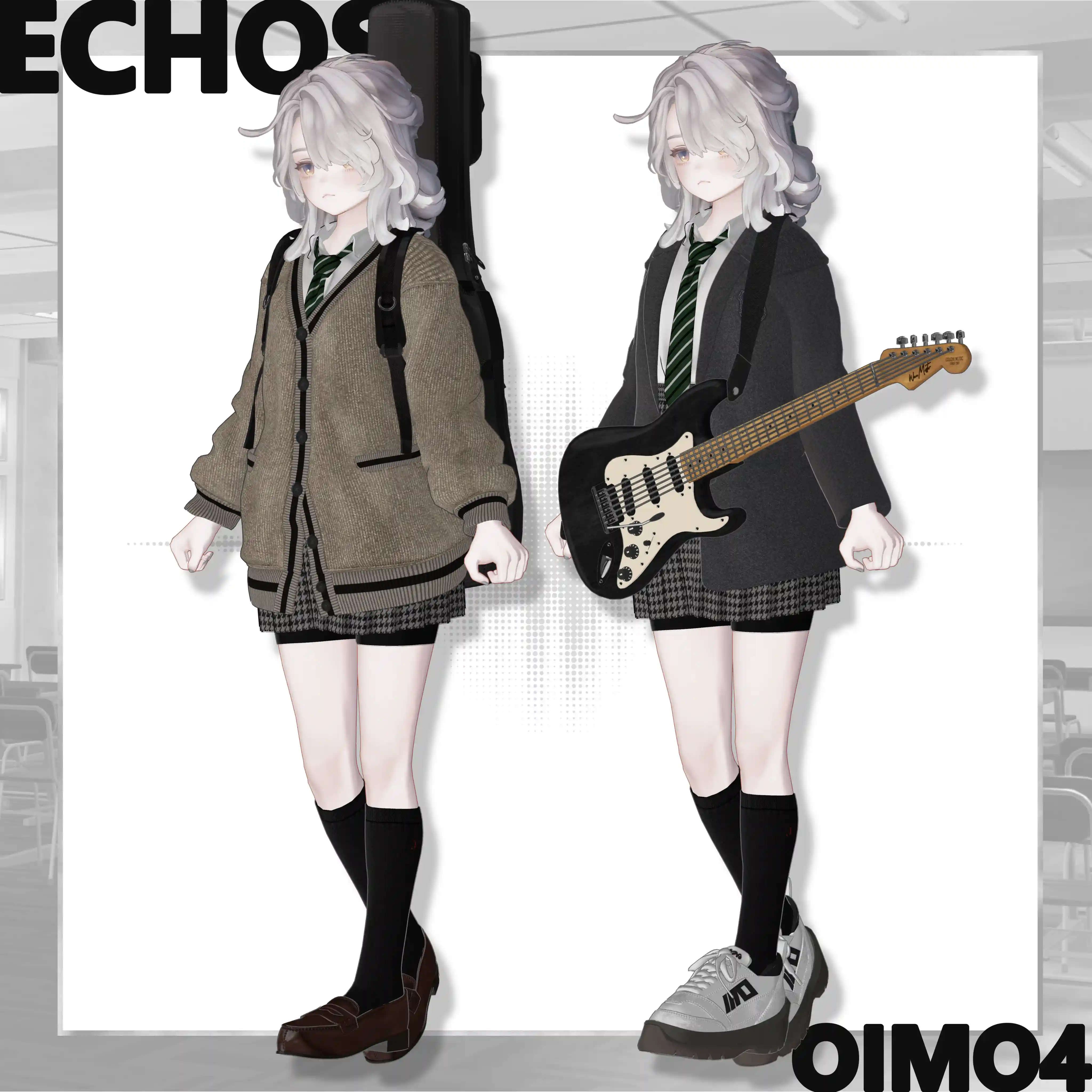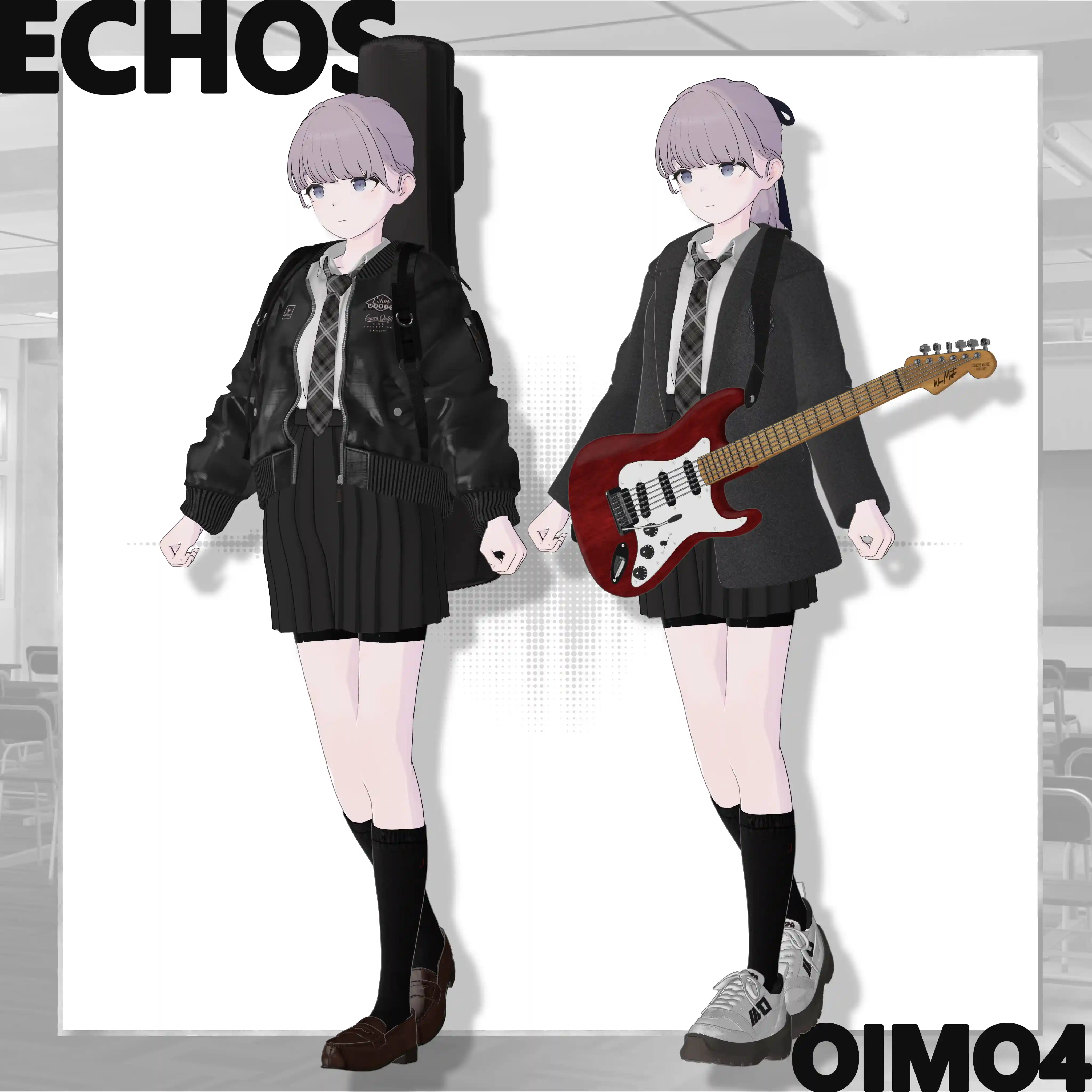 Material A1>カーディガンMaterial A2>ブレザーMaterial A3>MA-1Material B>シャツ >ネクタイ >スカートMaterial C1>スパッツ >靴下(ロング丈) >スニーカーMaterial C2>スパッツ >靴下(ロング丈) >ローファーMaterial D>ギターMaterial E>ギターアンプ >アンプシールド(ケーブル)Material F>ギターケース