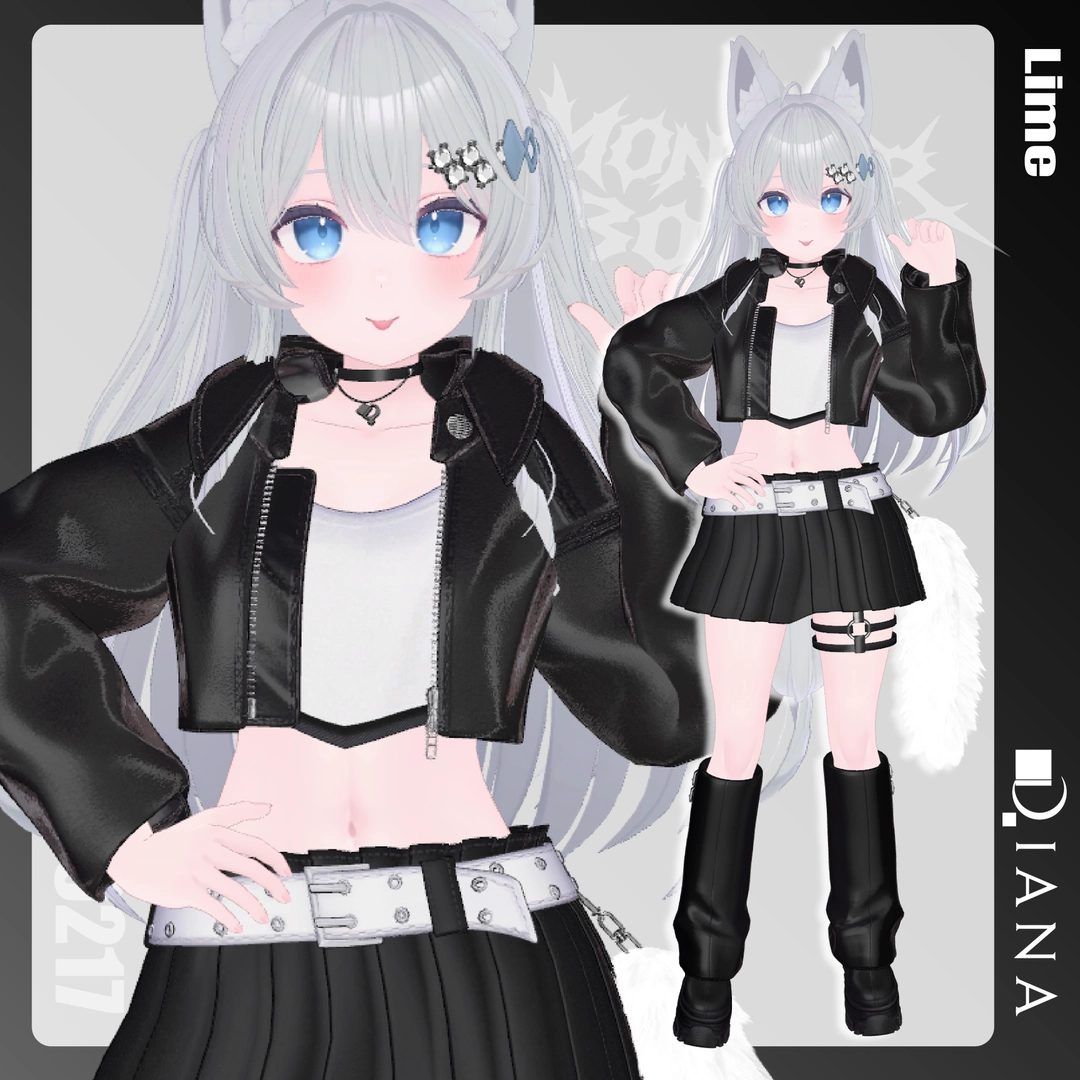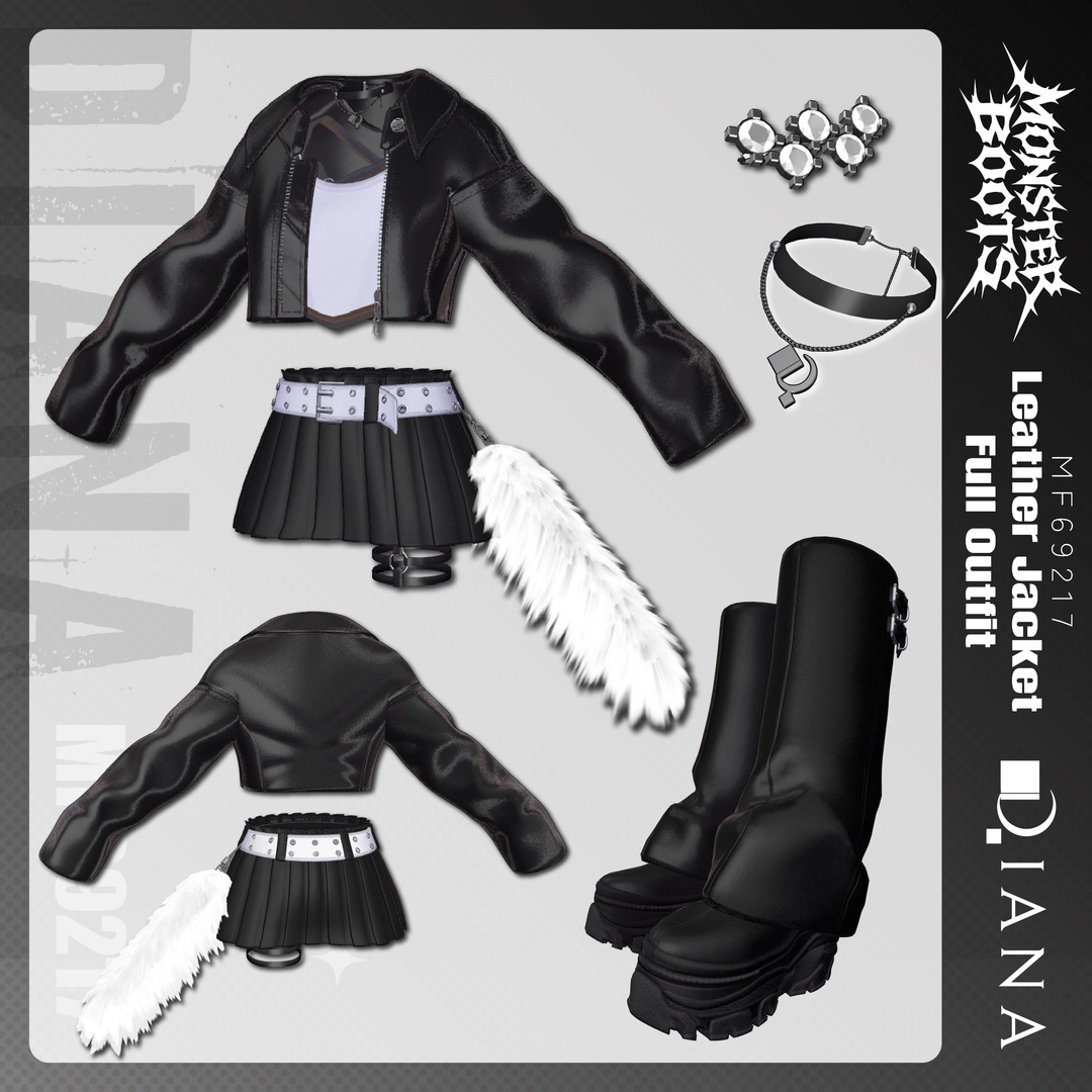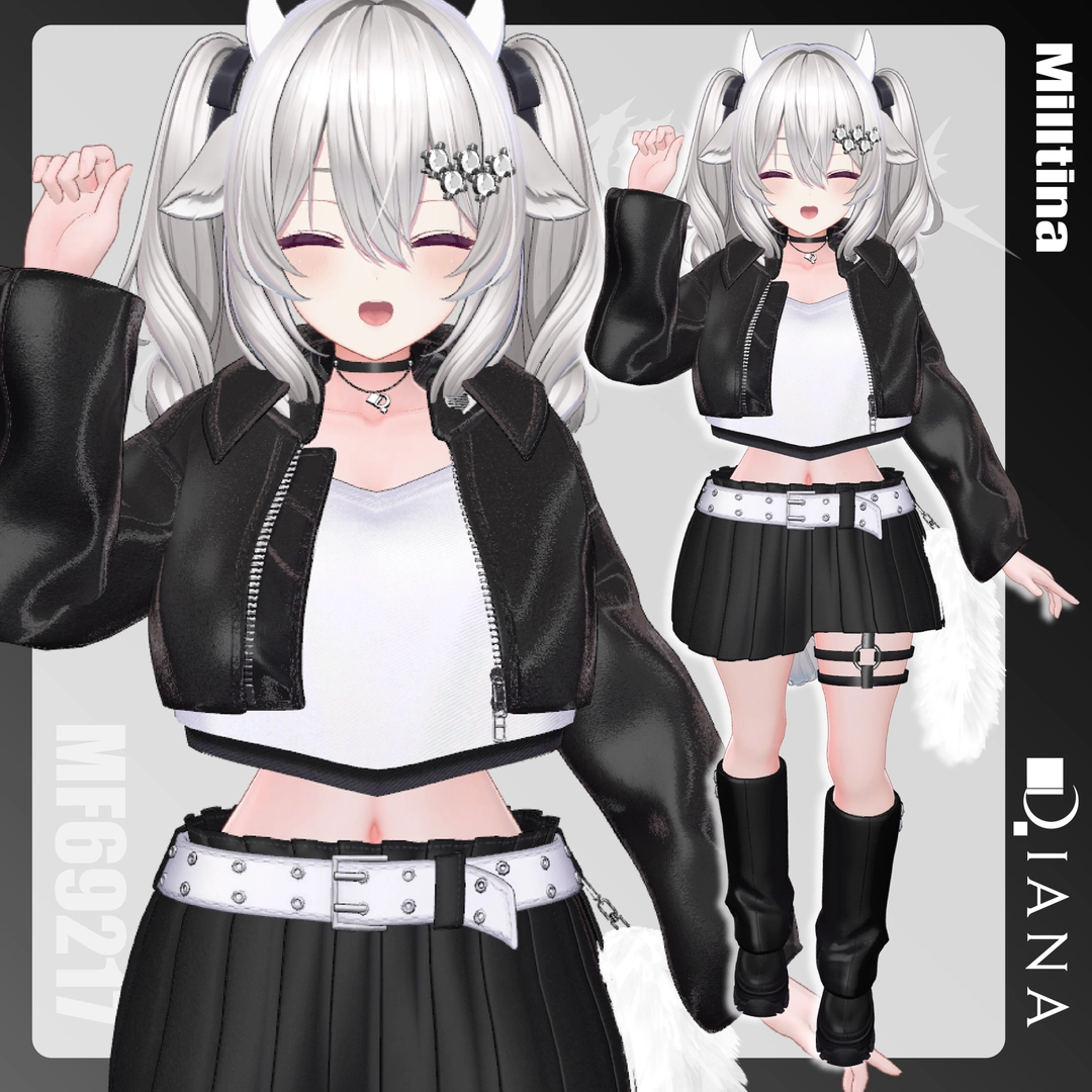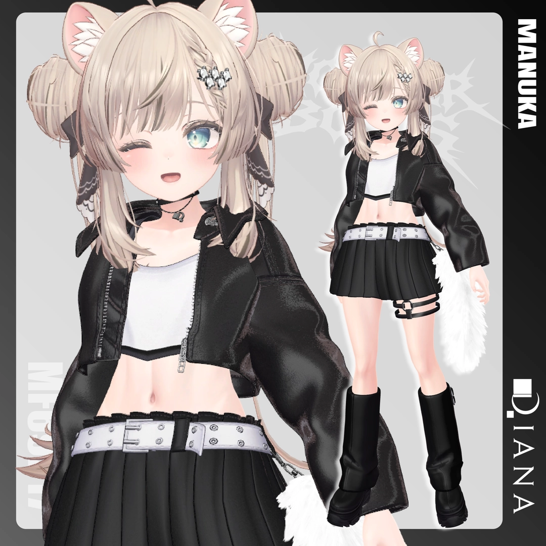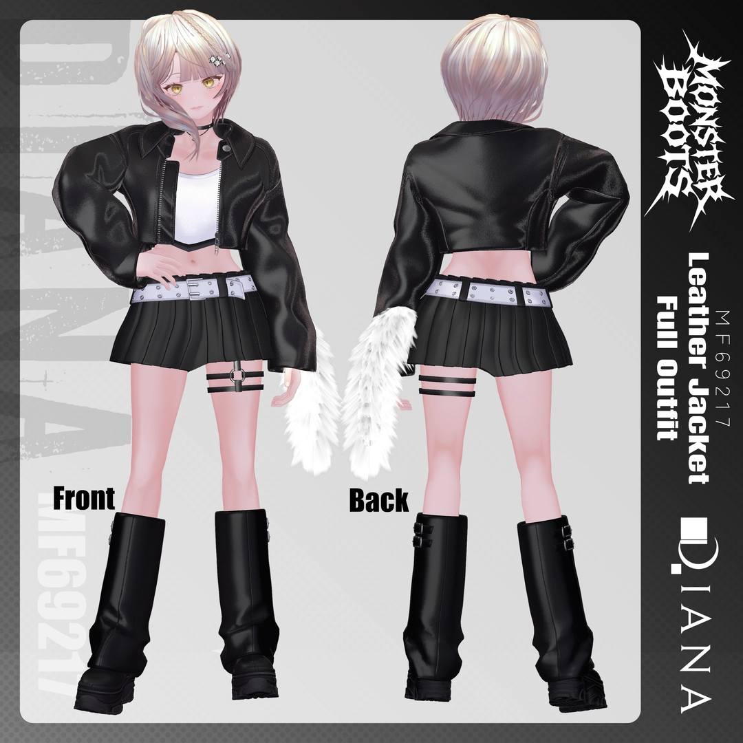 本商品には「ブーツ」「トップス」「ジャケット」「パンツ」「チョーカー」「ヘアアクセサリ」の3Dモデルが含まれます。