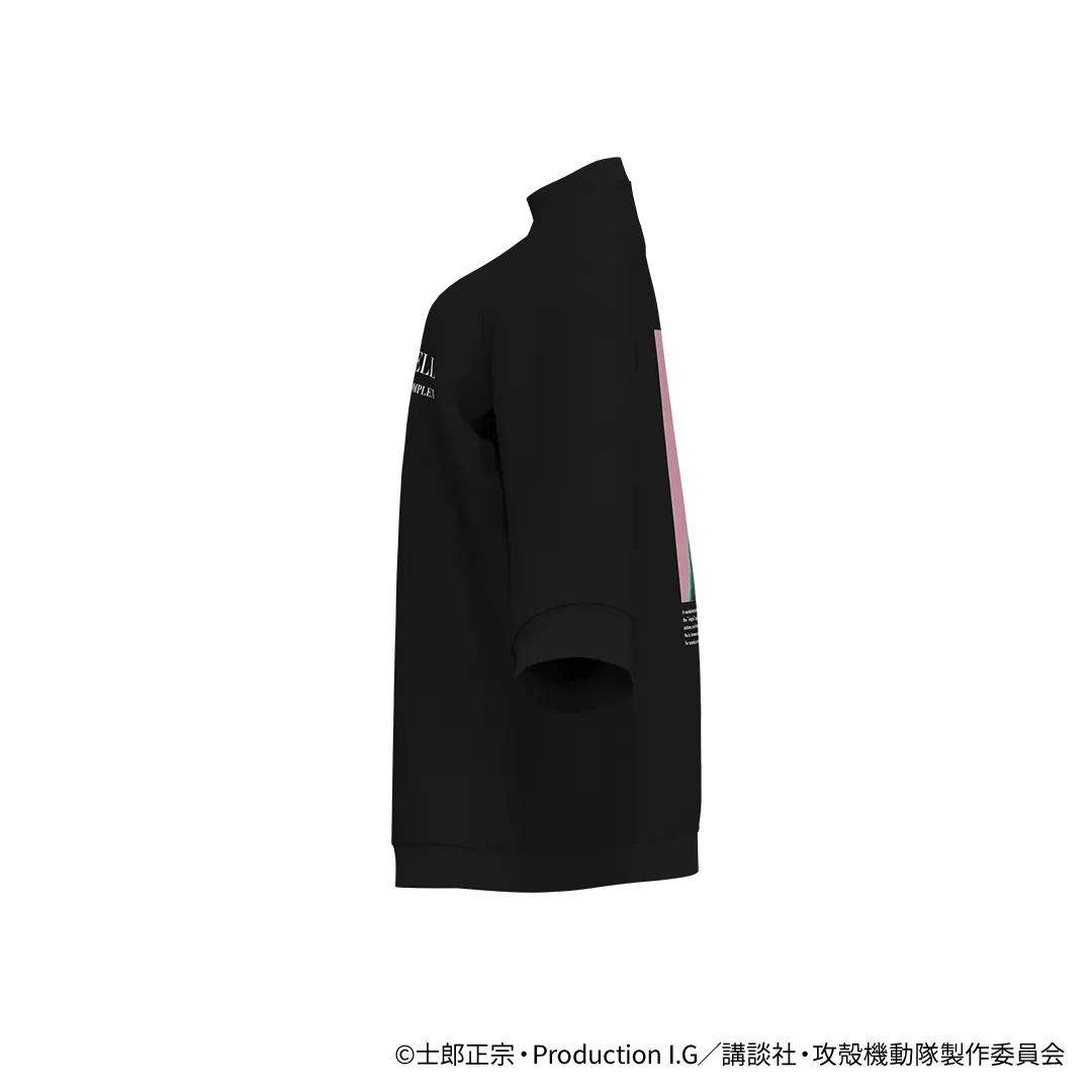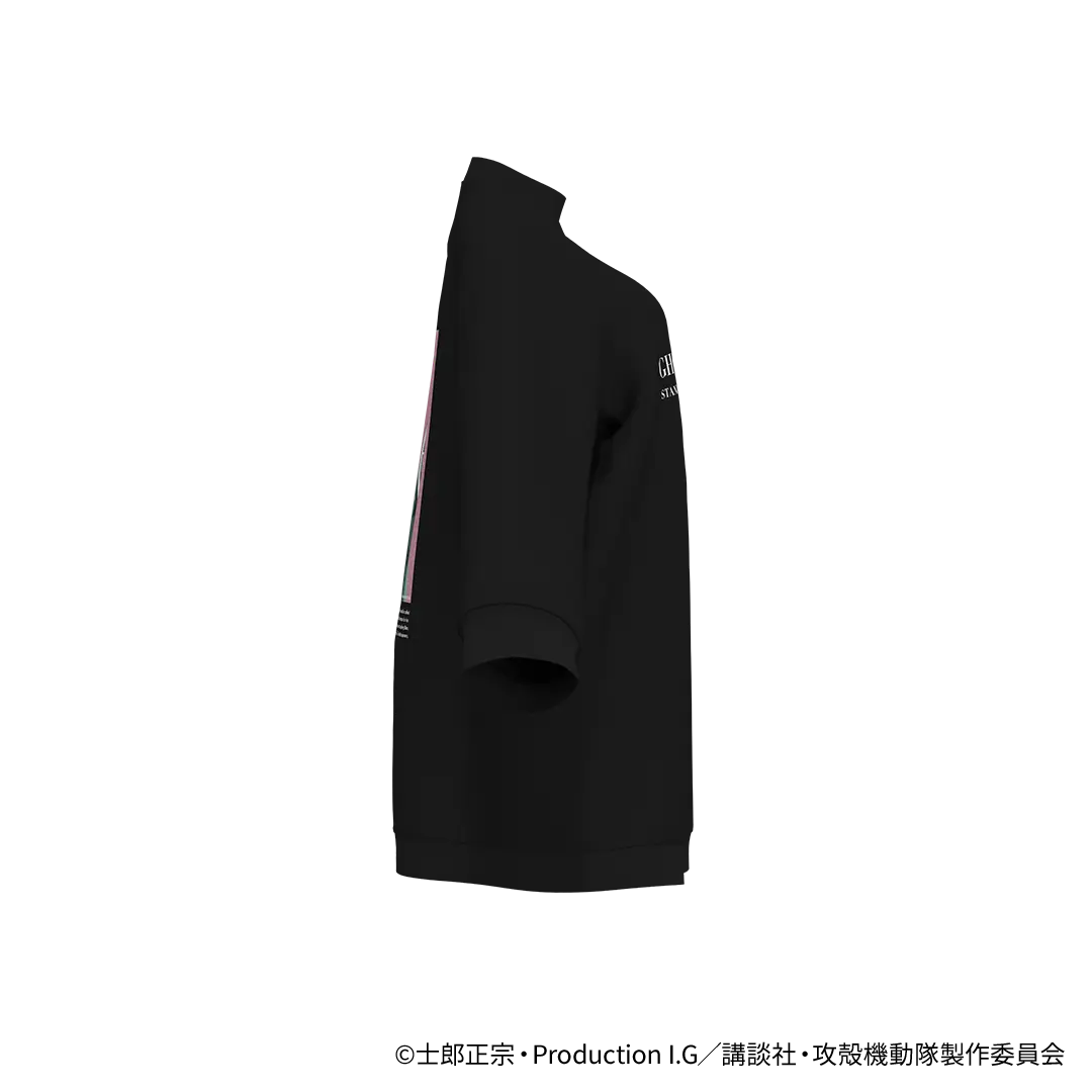 アニメシリーズ『攻殻機動隊 STAND ALONE COMPLEX』より、ぼかしたアオイの上に笑い男マークを重ねたバックプリントが目を引くモックネックプルオーバー。