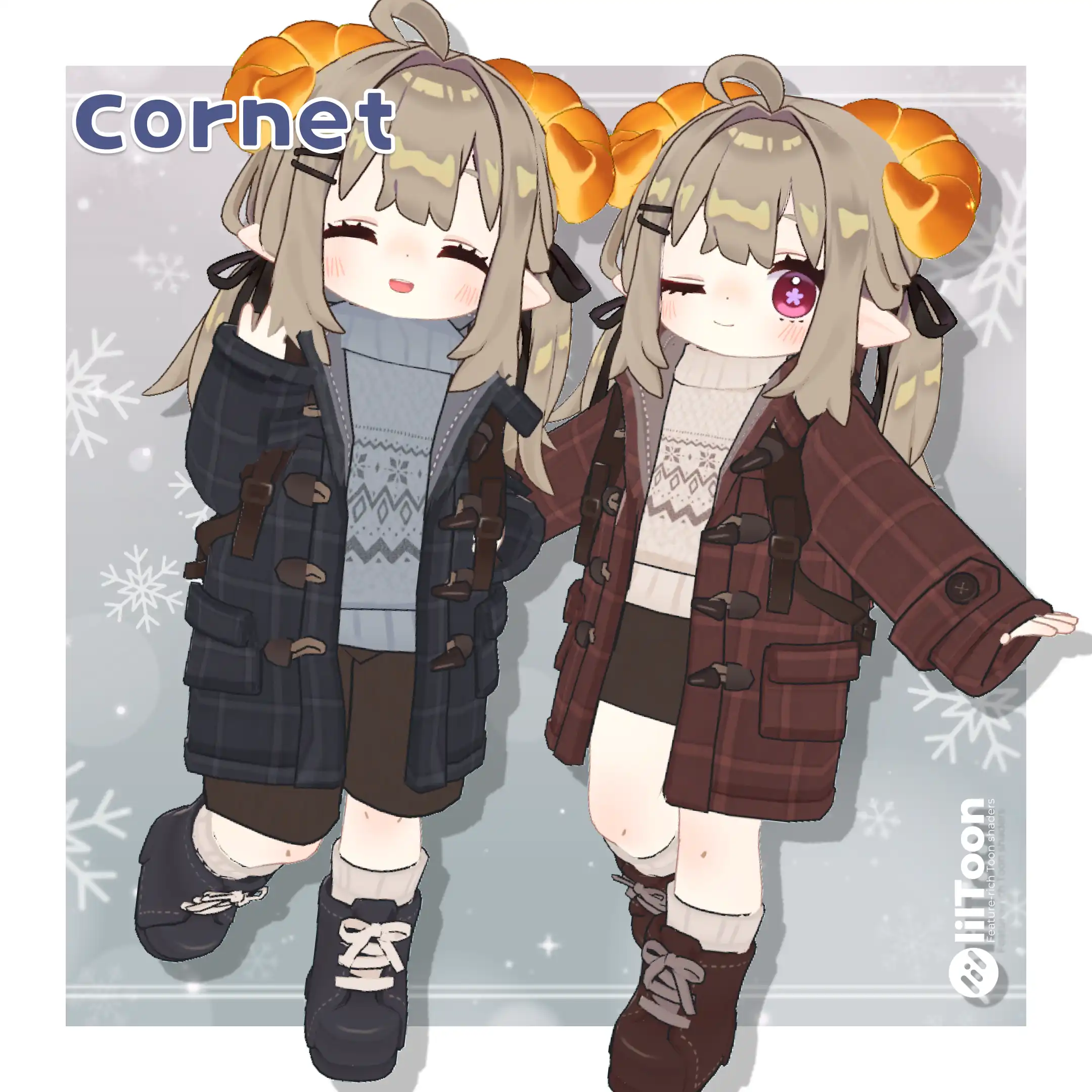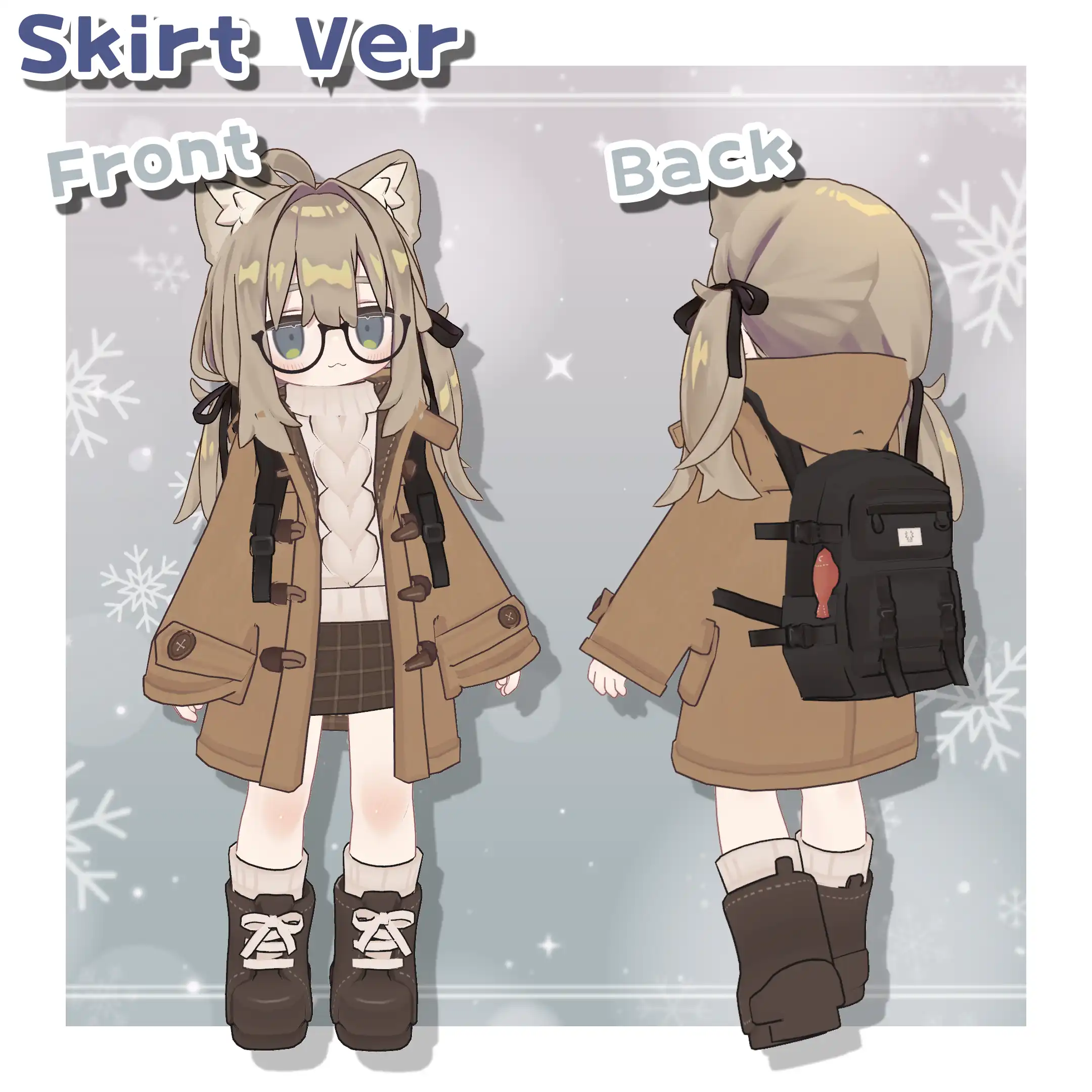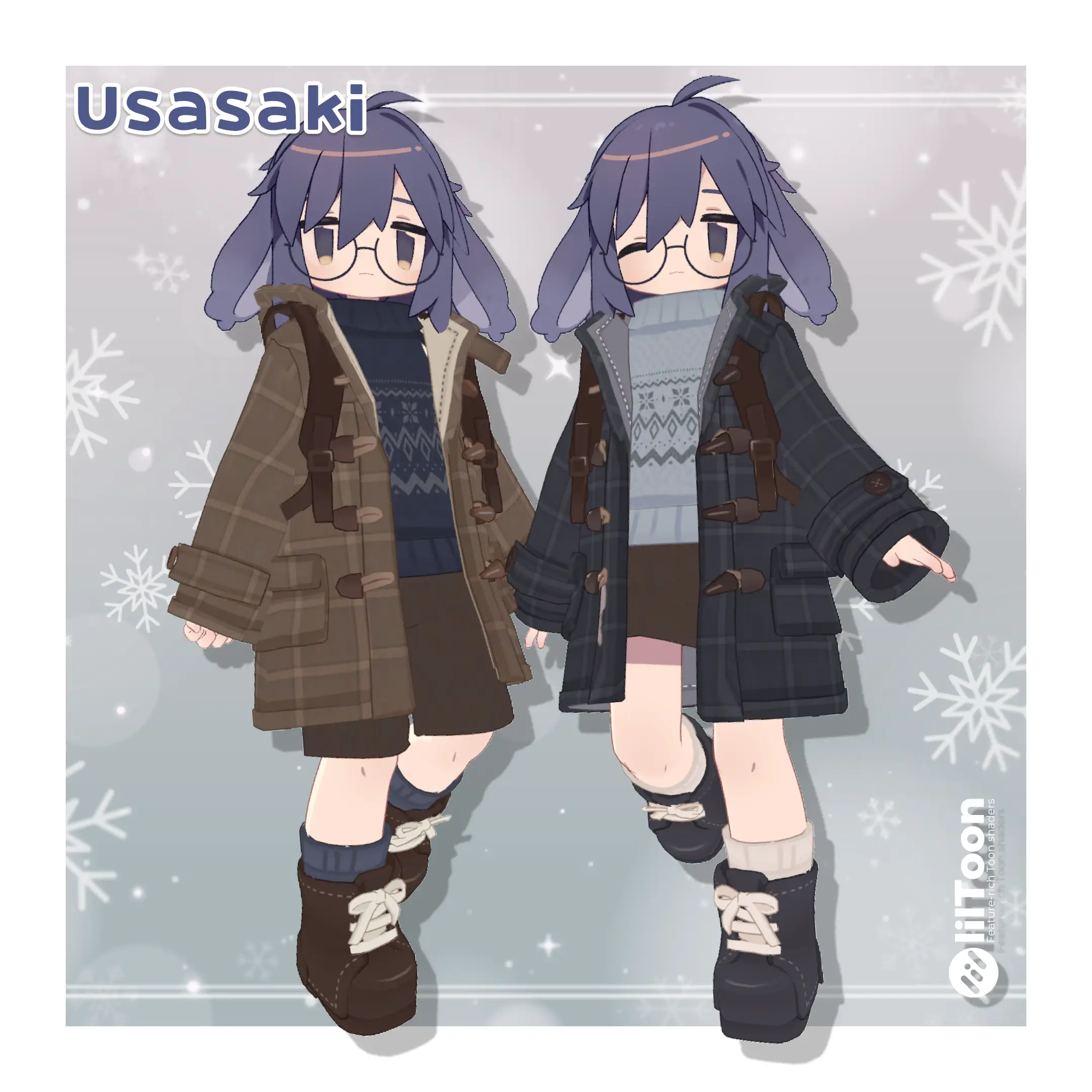 中のニットはコートなしで着る想定で作っていないので貫通や違和感などある可能性があります。(マテリアルで好きに色が変えられるよう別オブジェクトにしています。)
