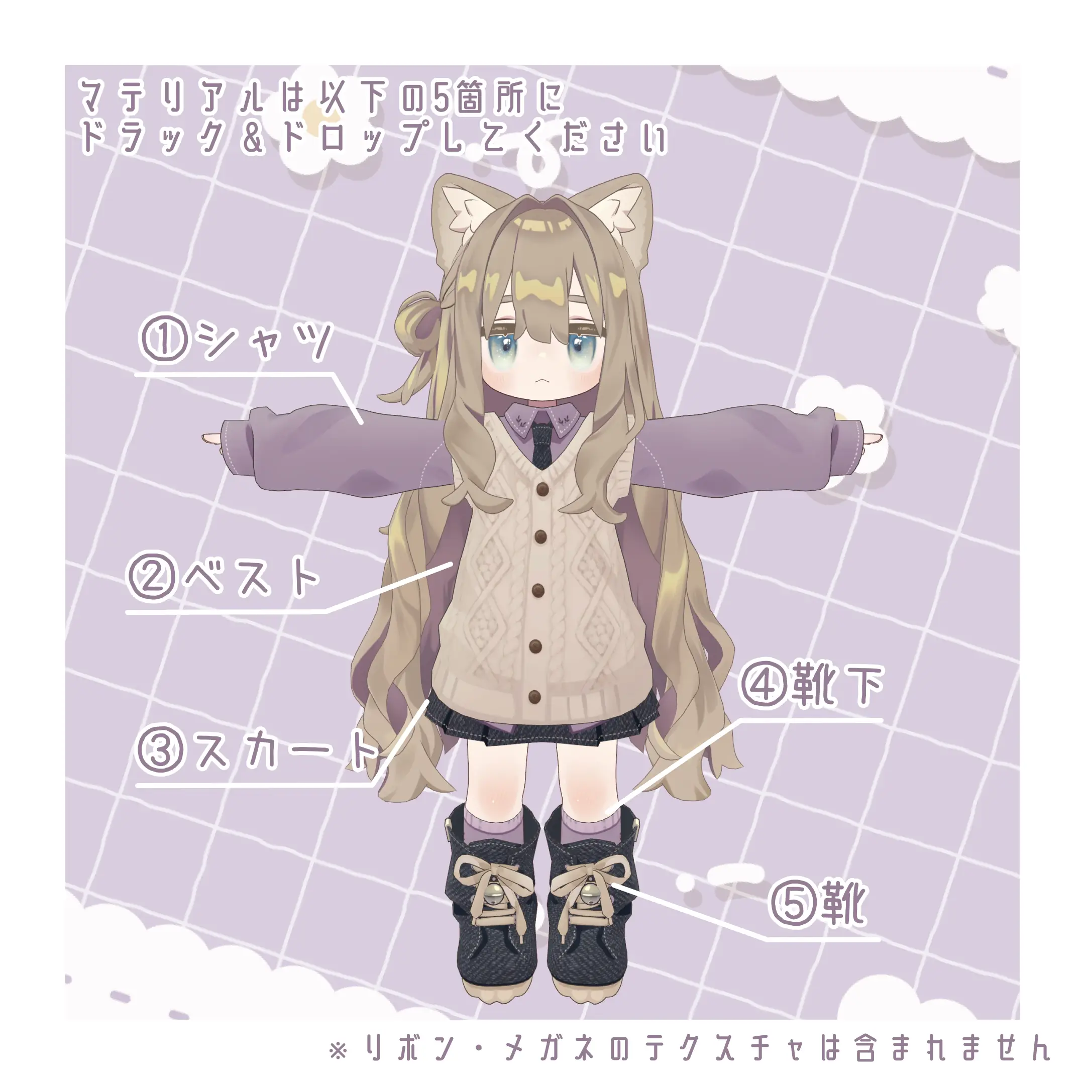 別売りのリボン・メガネ・しっぽバンドテクスチャはこちらですhttps://www.tokyoavatargate.com/shop/g/gKTN-0012