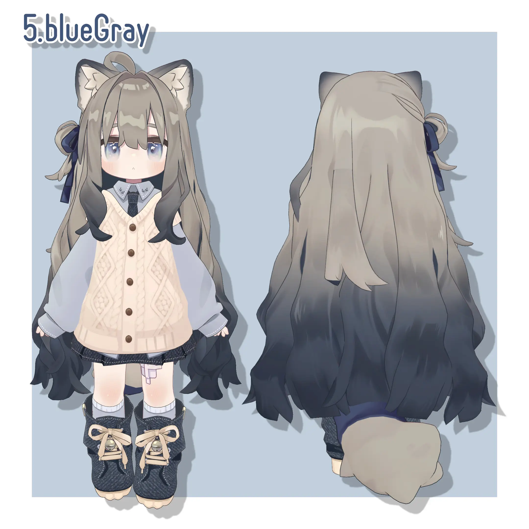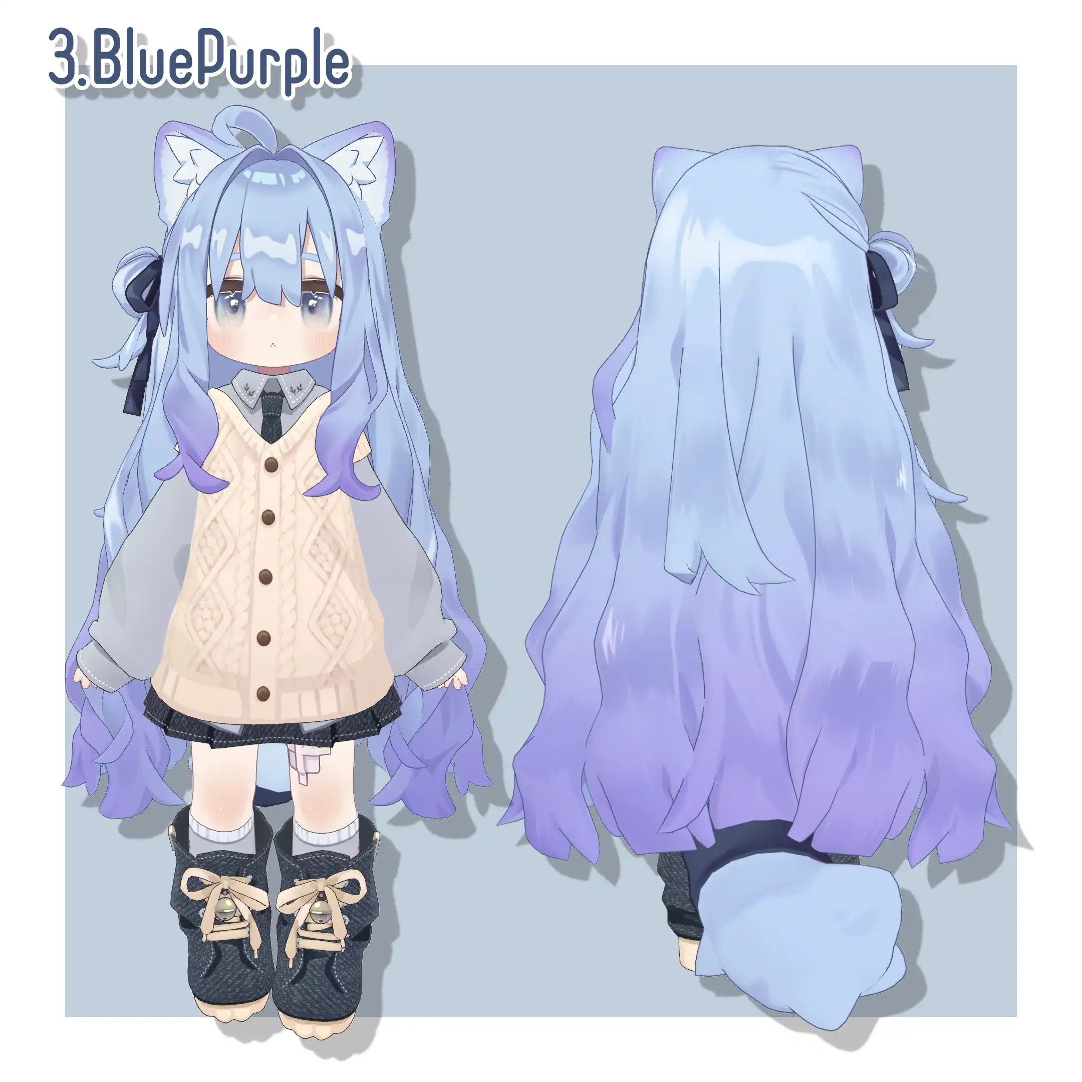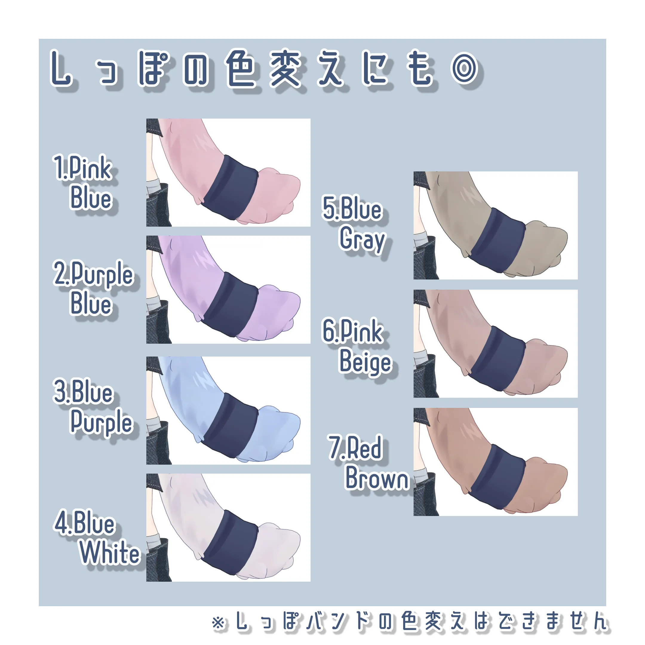 髪、猫耳、眉毛、しっぽの色変えが可能です。