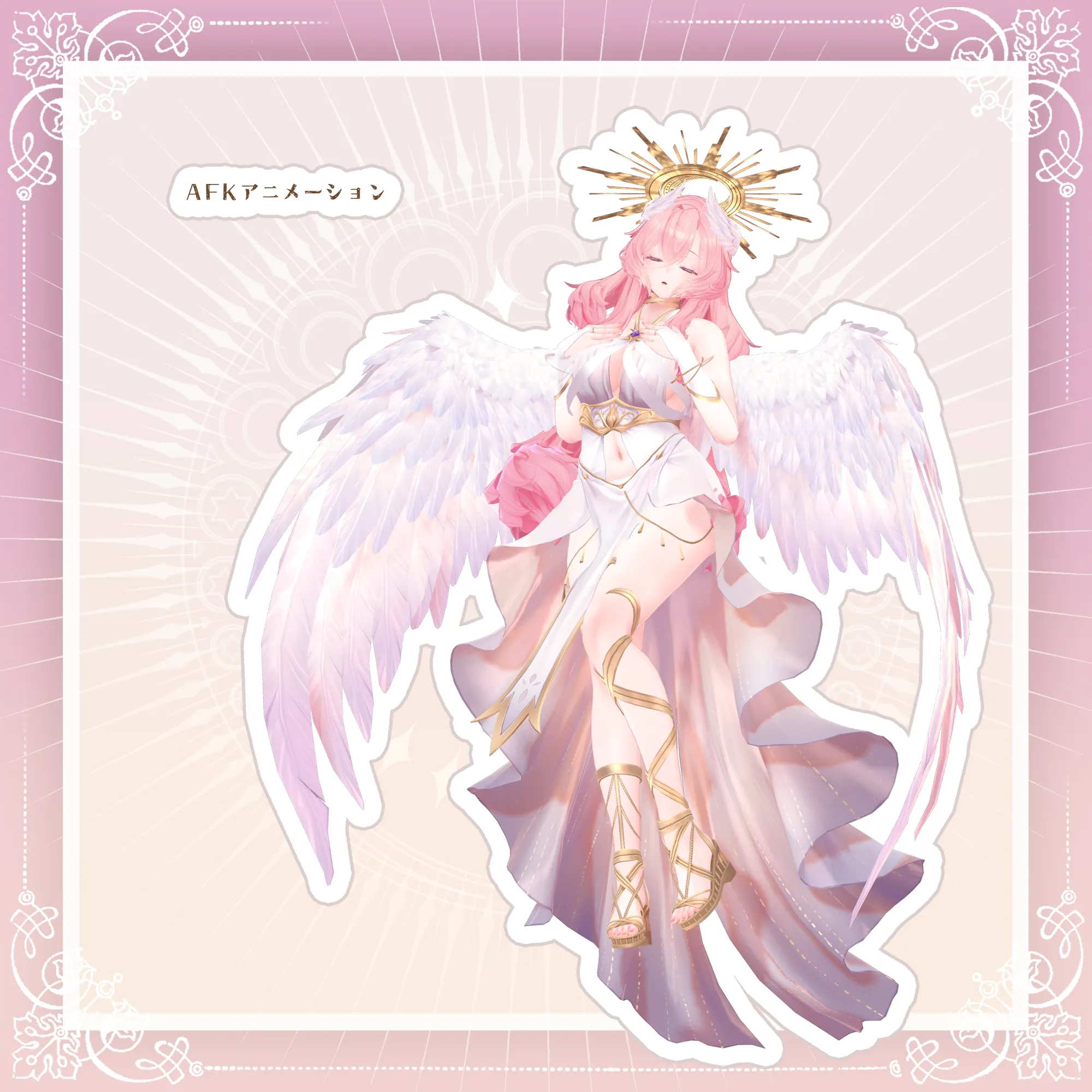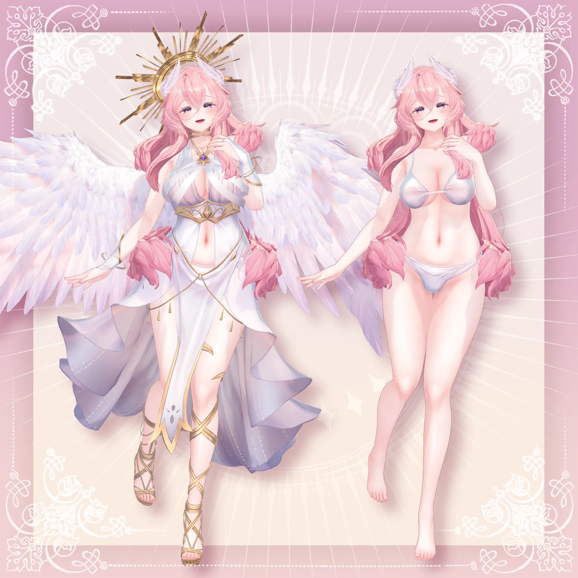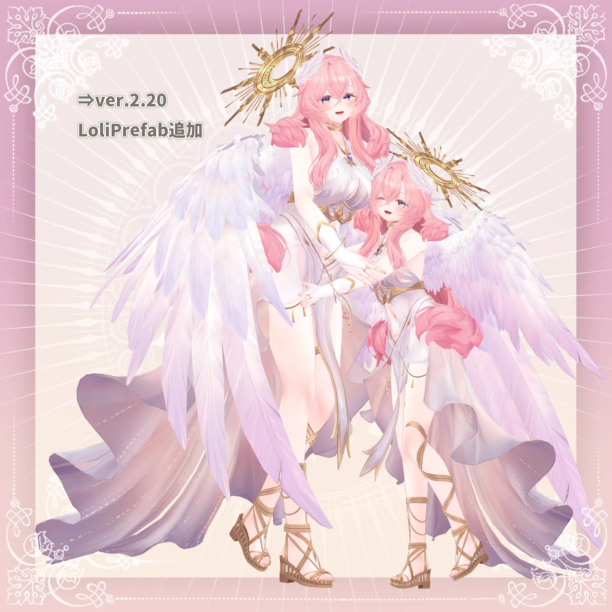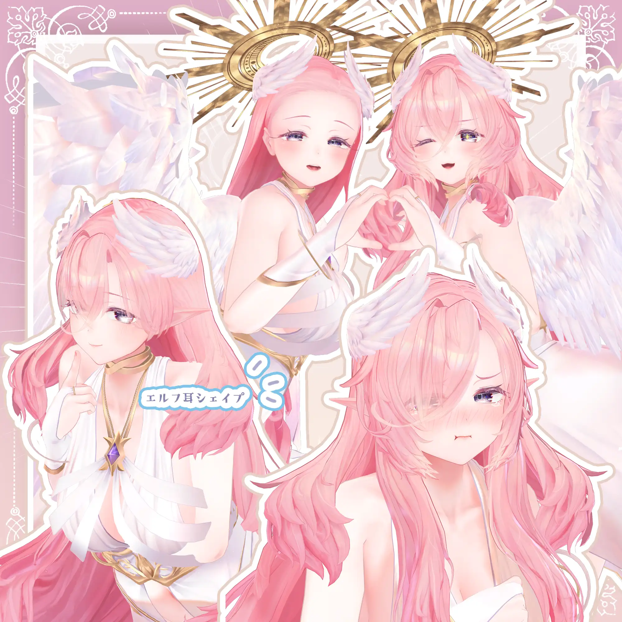VRChatアバター向けのオリジナル3Dモデル ふわふわピンク髪の翼の生えた女神様👼 好物はきっとミックスベリーワッフル。