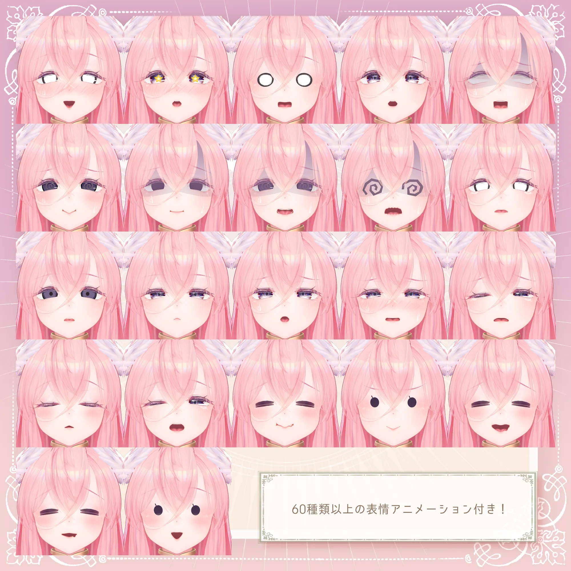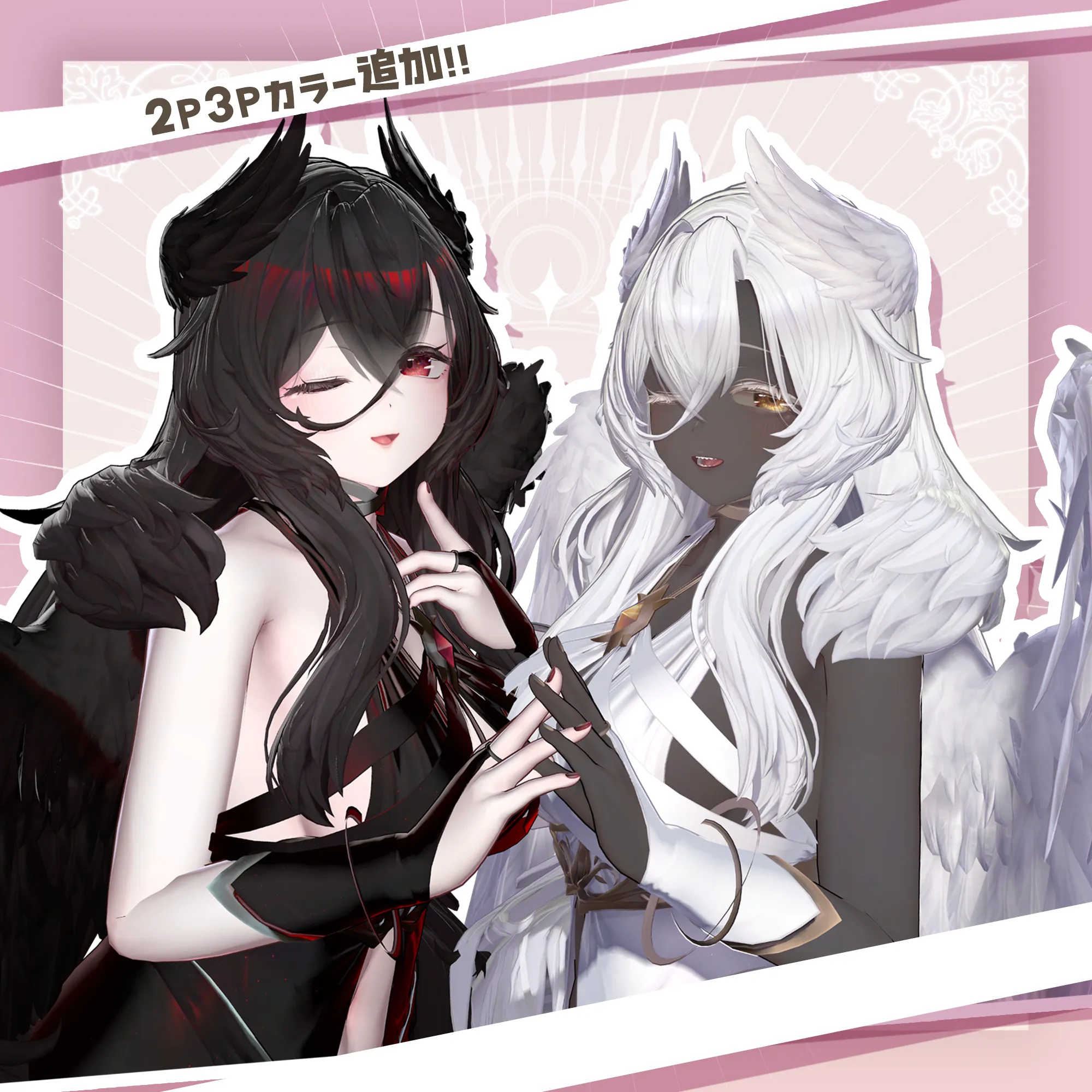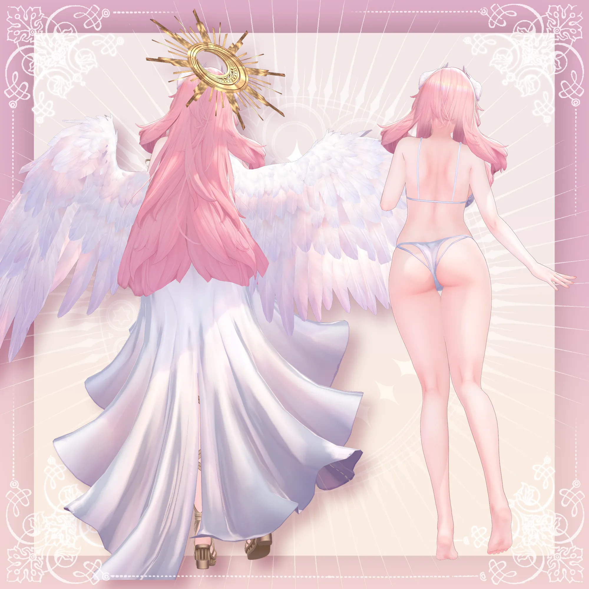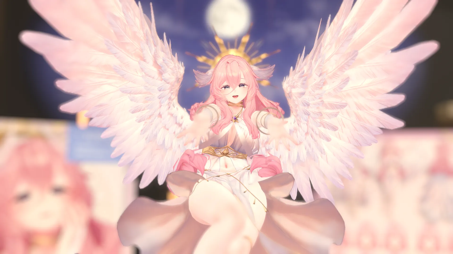 VRChatアバター向けのオリジナル3Dモデル ふわふわピンク髪の翼の生えた女神様👼 好物はきっとミックスベリーワッフル。