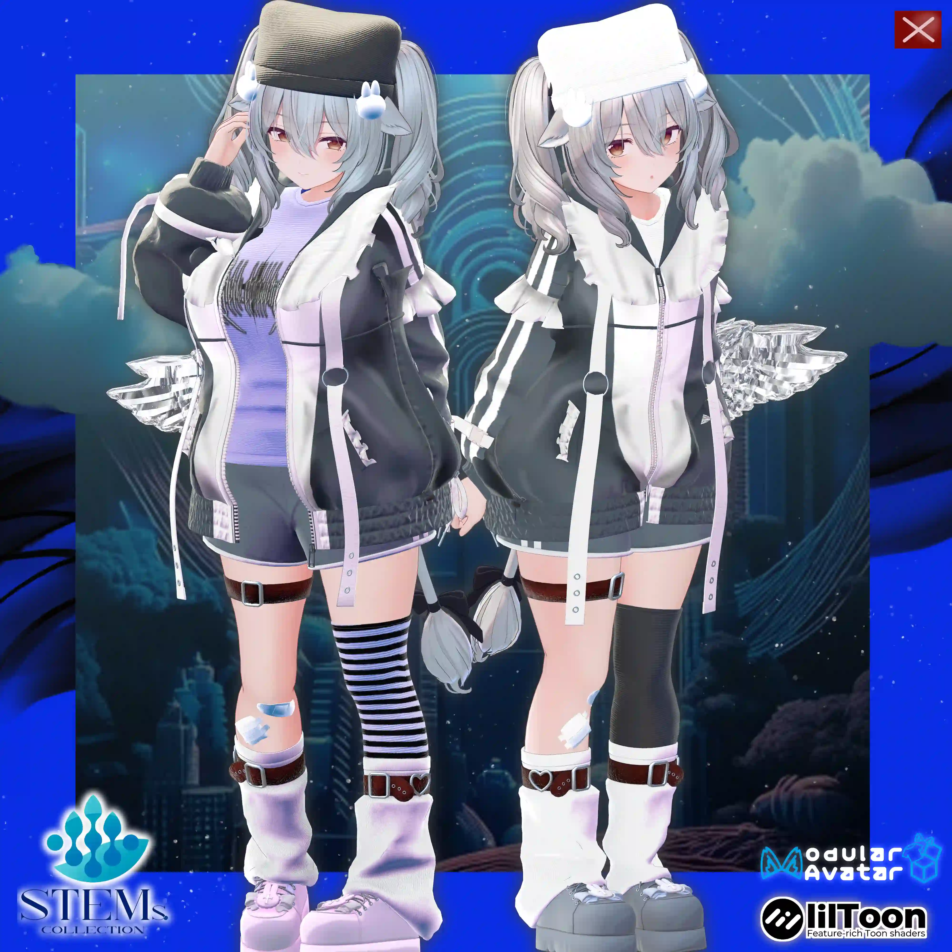 Blender4.0,Blender4.3にて作成unity2022.3.22f1VRCSDK3.7.6にて調整しておりますClipStudioPaintでのテクスチャリングのためPSDはレイヤー内に一部差がある点をご留意ください。