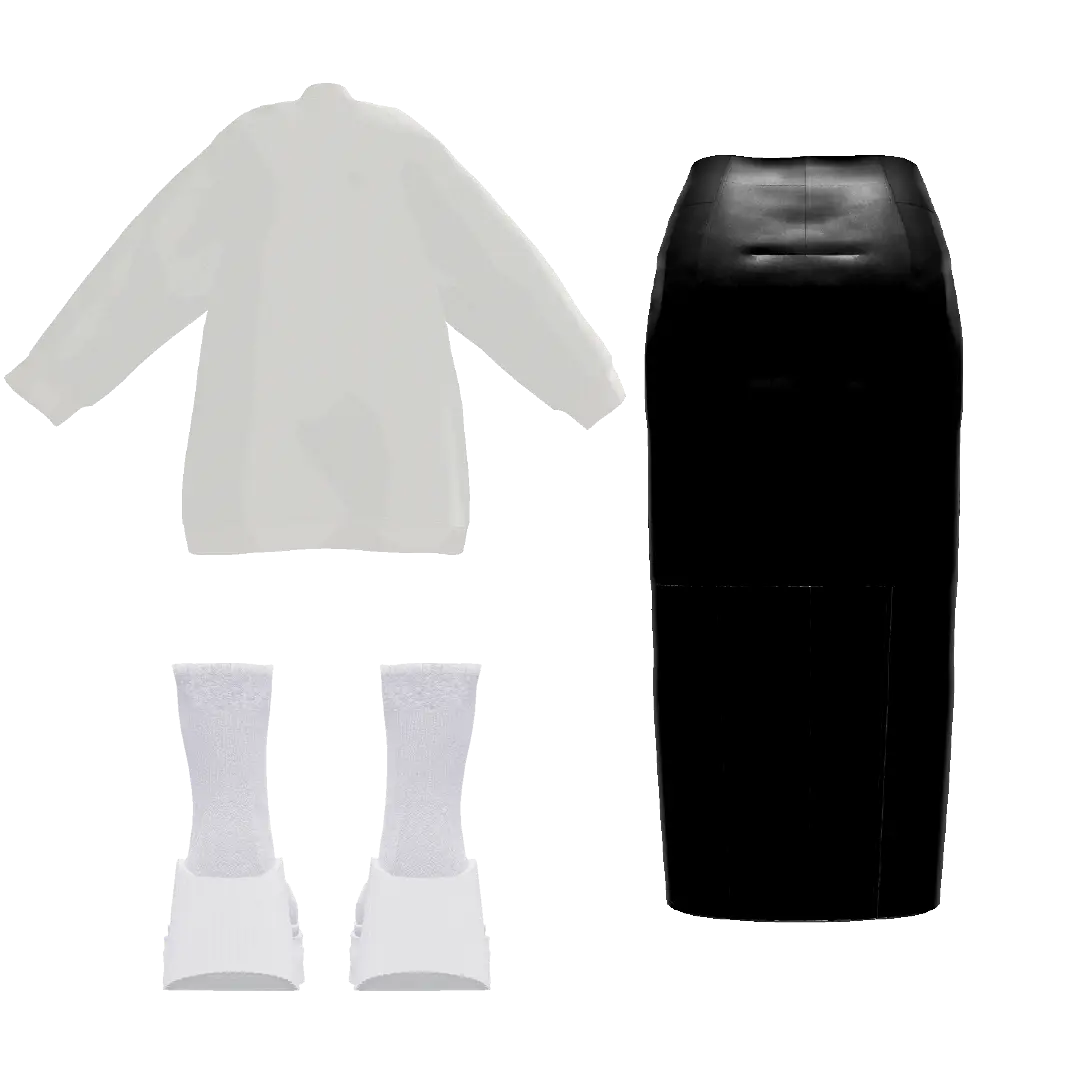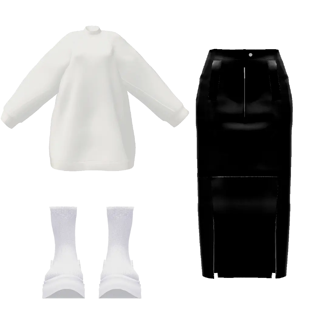 【セット内容】 ・TAG OVERSIZE PULLOVER(ホワイト) | TAG-0002 ¥2,200 ・TAG SLIT LONG LEATHER SKIRT(ブラック)| TAG-0013 ¥2,200 ・TAG SOCKS BOOTS(ホワイト) | TAG-0010 ¥1,100