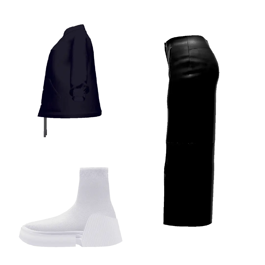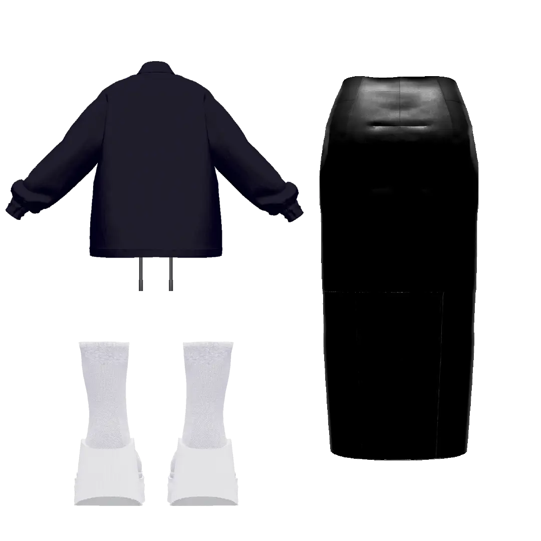 【セット内容】 ・TAG COACH JACKET(ブラック) | TAG-0005 ¥2,200 ・TAG SLIT LONG LEATHER SKIRT(ブラック)| TAG-0013 ¥2,200 ・TAG SOCKS BOOTS(ホワイト) | TAG-0010 ¥1,100