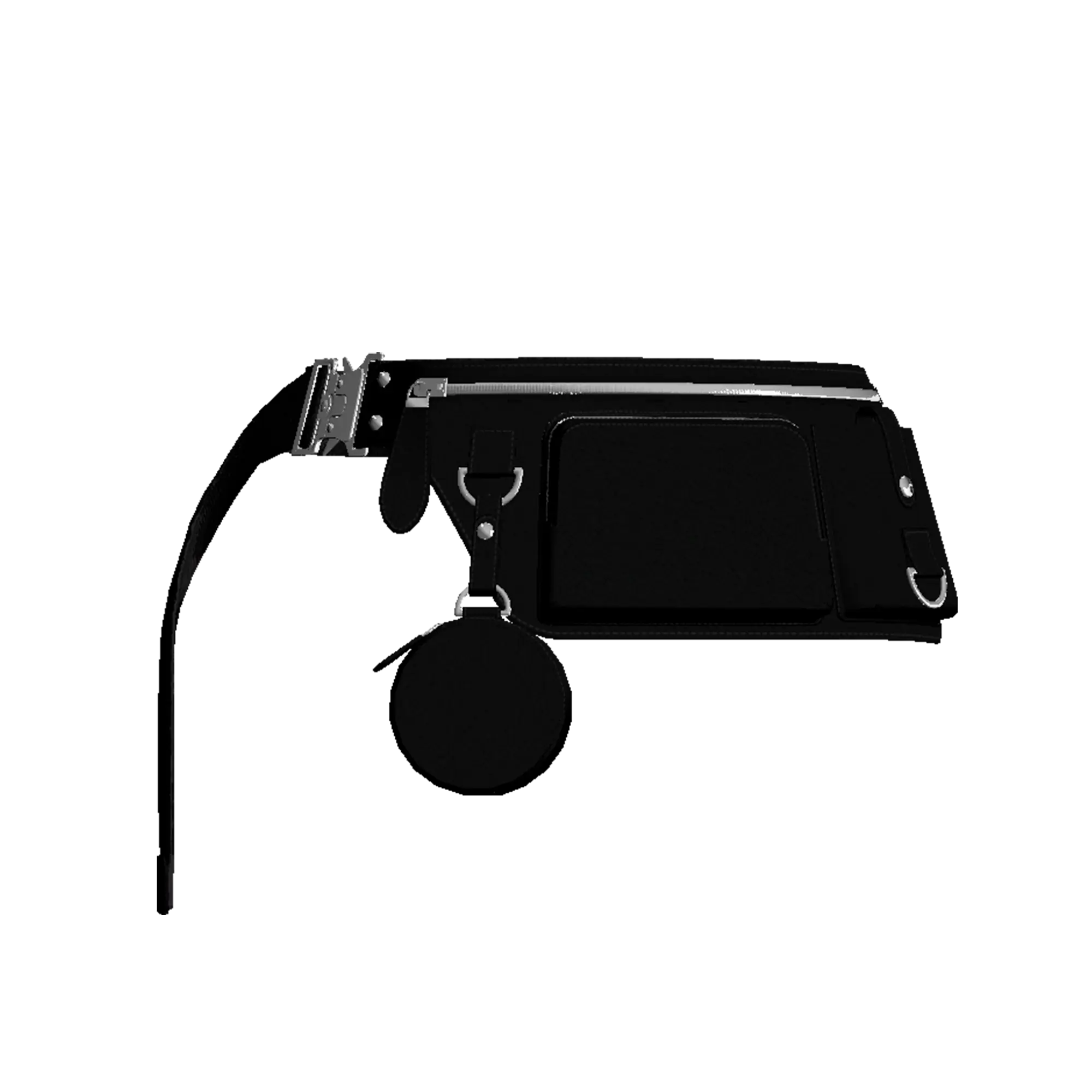 本体部分に牛革を使用し、形の異なる3つのミニバッグを配したガジェット感のあるボディーバッグ。
