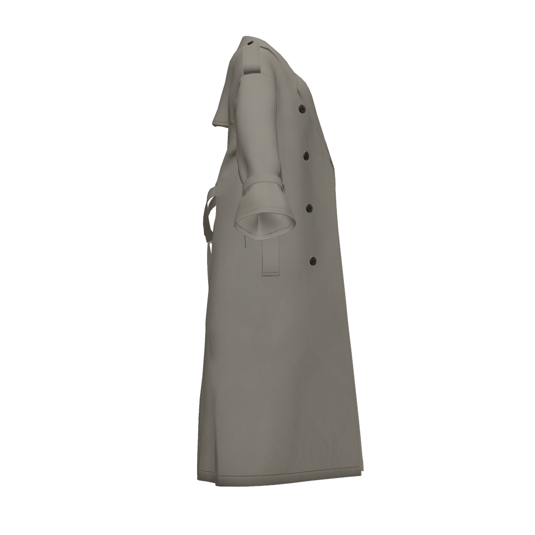 伝統的なトレンチコートの仕様に基づき忠実に再現しながらも、ドロップショルダーや袖口のベルトの絞りなどシルエットとディテールで現代風にアップデートした一品。