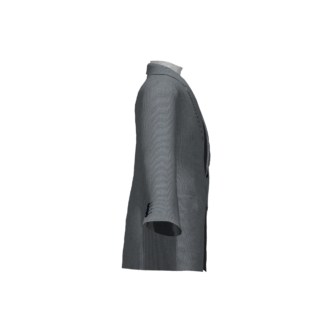 ラペル幅やサイドベント、袖の本切羽仕様のクラシカルなデザイン。