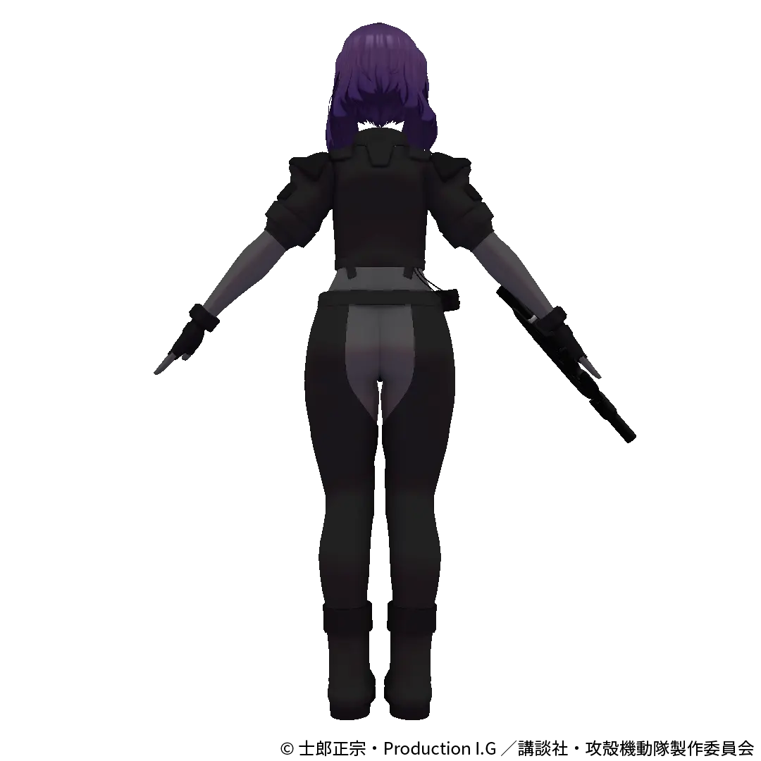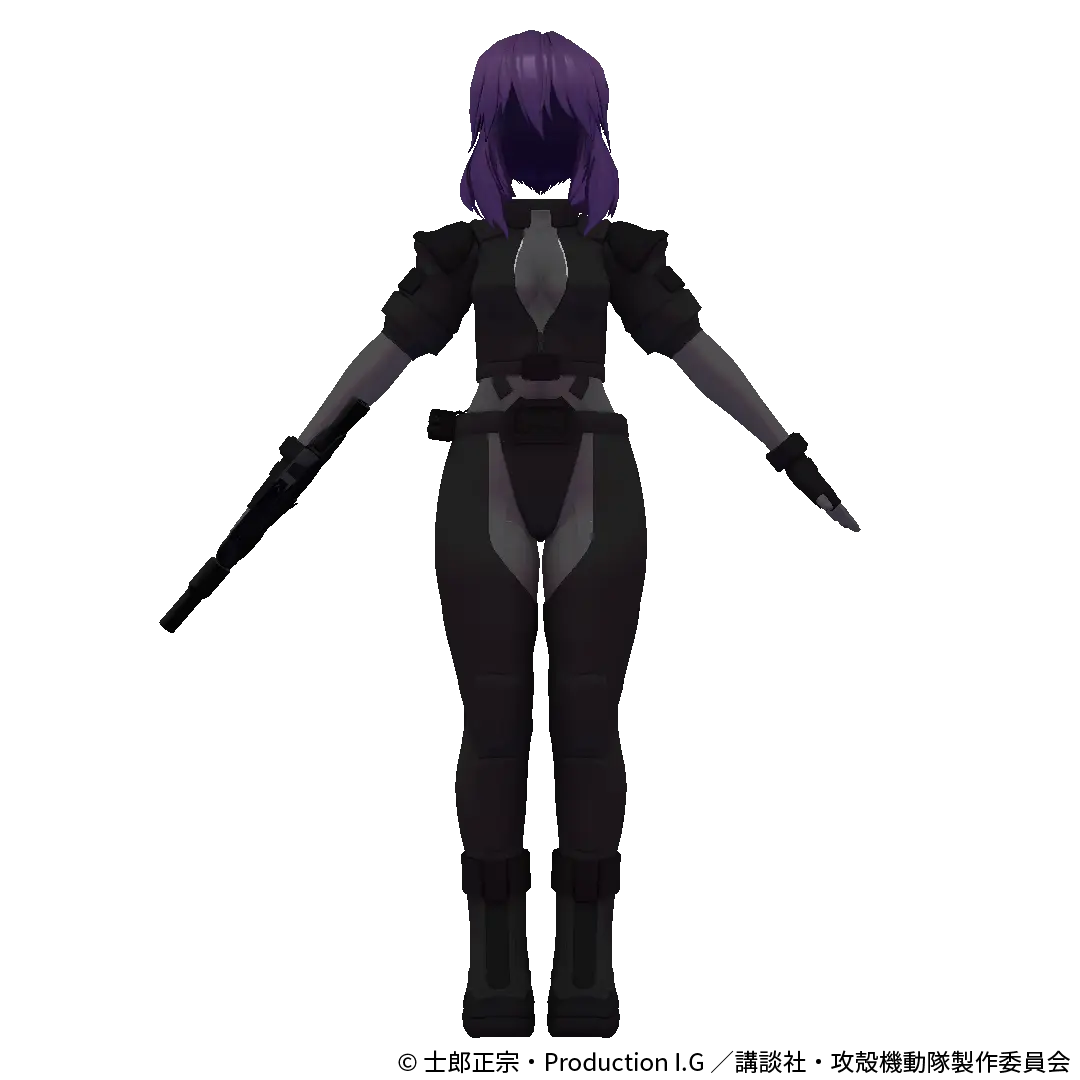 VRChatの世界に、『攻殻機動隊 S.A.C.』の主人公草薙素子の光学迷彩エフェクト・光学迷彩スーツ・グローブ・ブーツ・銃(Seburo M-5・Seburo C-26A)を再現。