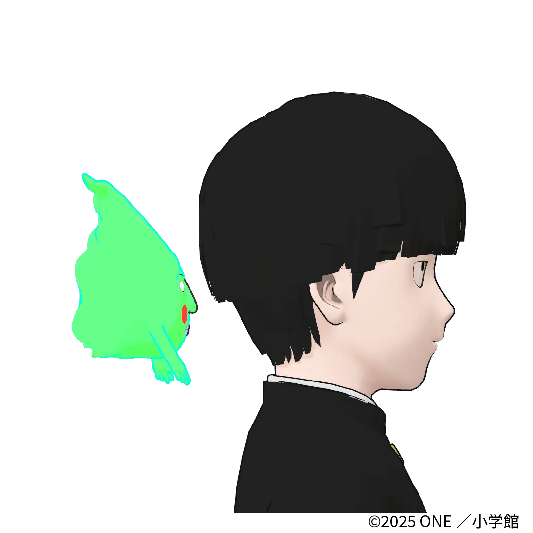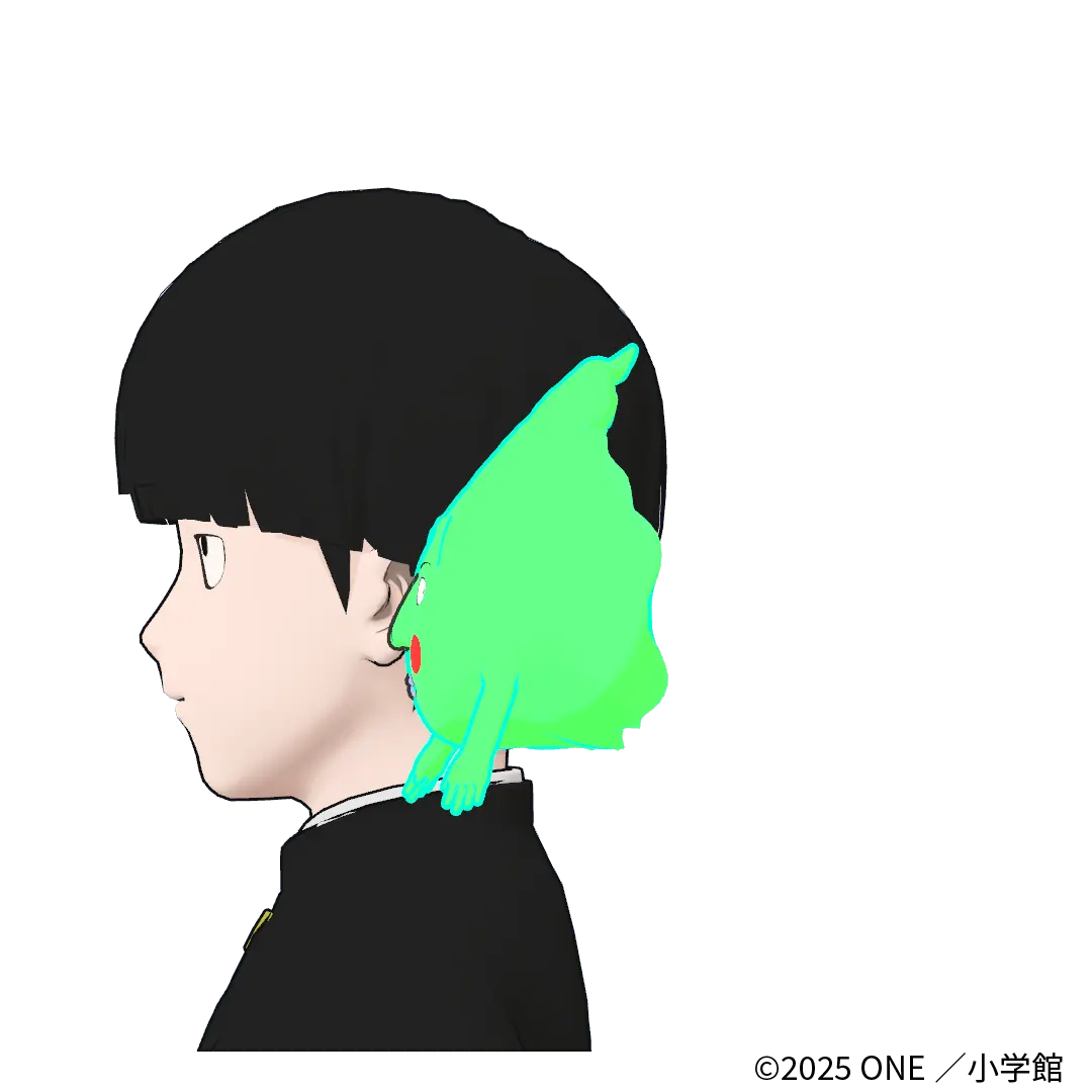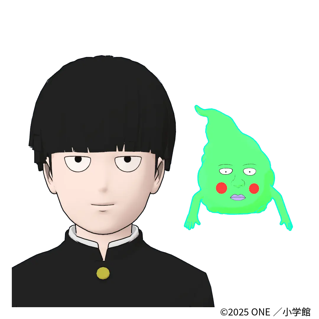 「裏サンデー」、「マンガワン」にて連載された大人気漫画『モブサイコ100』。 外見はいたって普通―というよりむしろ地味。場の空気を読むのが苦手な中学2年生、主人公モブこと影山茂夫は、実は強力な超能力の持ち主だった。 「霊とか相談所」を経営する霊幻新隆や元教祖の悪霊エクボらとともに成長するモブを描く青春サイキックストーリー。 本作品登場キャラクターがVRChat向けデジタルファッションとして登場! VRChatの世界に、モブに憑りついた悪霊エクボをユーザーについてくるギミックとして再現。