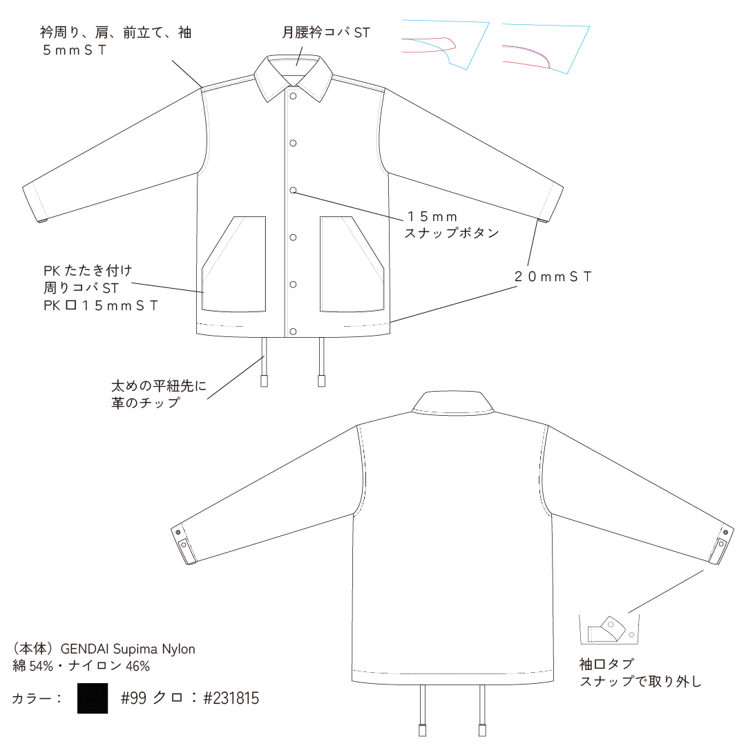 胸部に切り替えを入れ、立体感を引き立てたコットンナイロン素材のコーチジャケット。