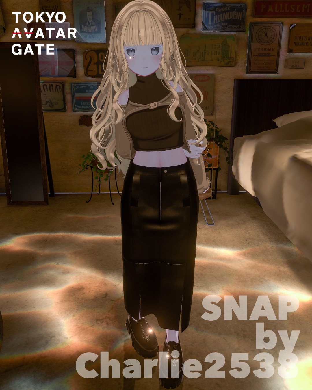 TAG SLIT LONG LEATHER SKIRT ¥2,200